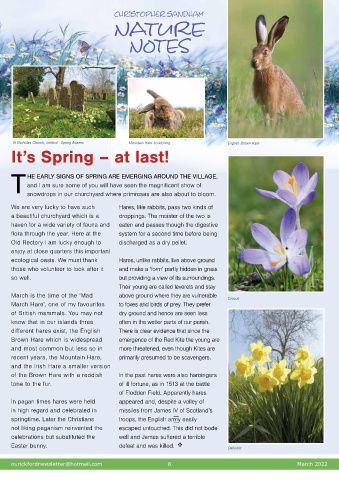 St Nicholas Church, Ickford - Spring flowers Mountain Hare scratching. English Brown Hare